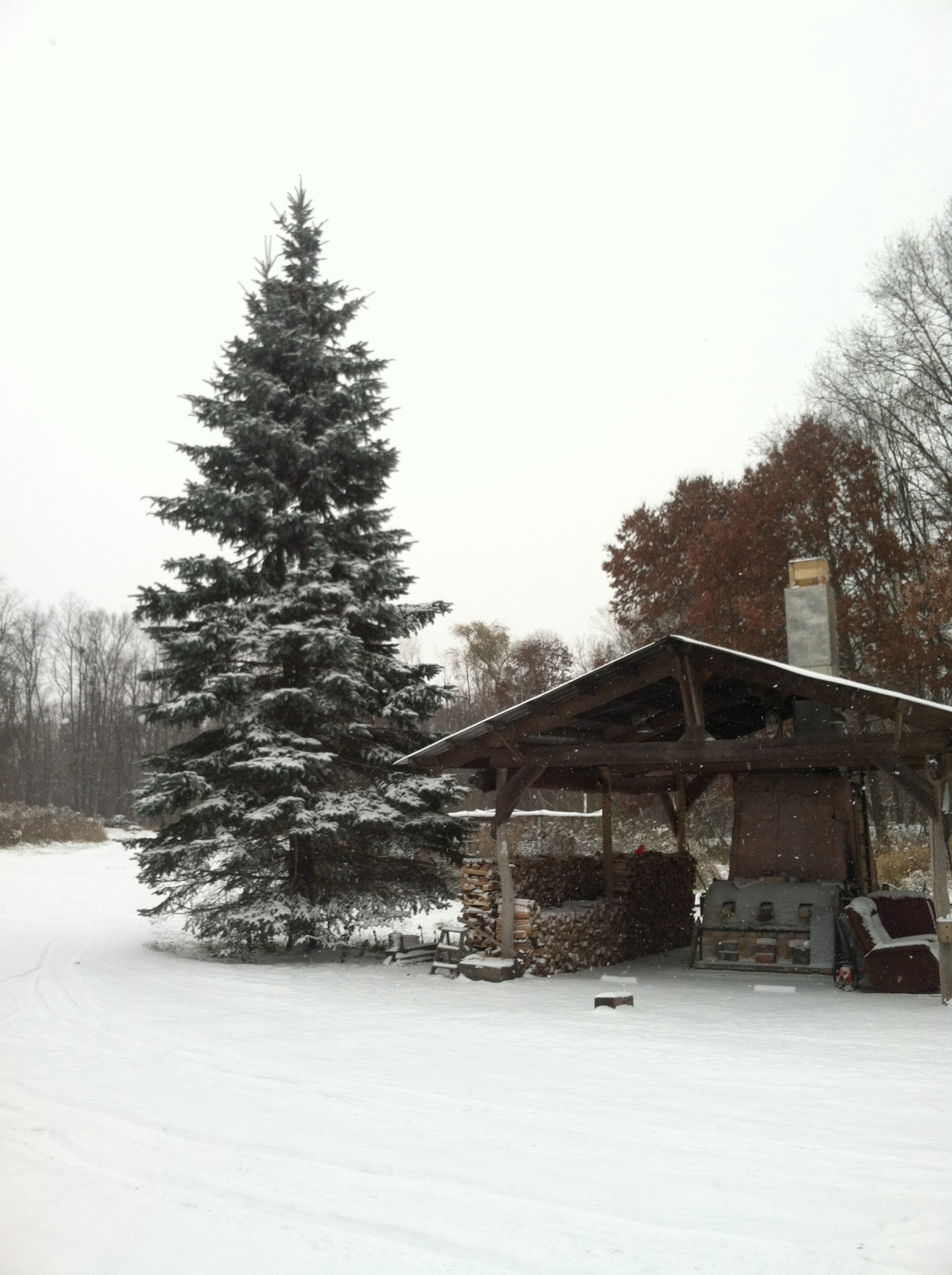 A noborigama is traditionally a multi-chambered climbing kiln built on a slope. The NOBO was single chambered, about 6 feet high (2 m) and 7.5 feet long (2.5 m). It had a volume of 60 cubic feet (1.6 m3). It was stoked through a firebox in the front, with one stoke hole on either side. Construction of the noborigama was finished in December of 2009. It was fired about once a month unless preparations to fire the anagama were under way. The firings averaged about 50 hours long.